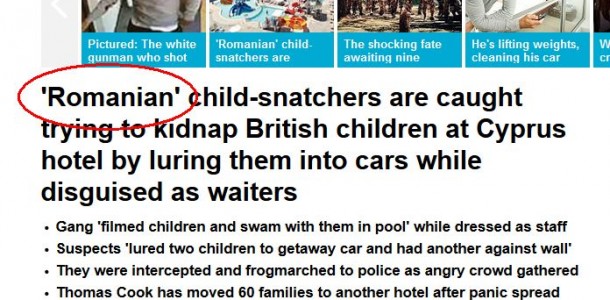 Cele mai citite publicatii din Marea Britanie au relatat, joi, ca un grup de romani a incercat sa rapeasca trei copii ai unor turisti englezi dintr-un hotel din Cipru. Subiectul a iscat o noua isterie impotriva romanilor, insa realitatea este cu totul alta.