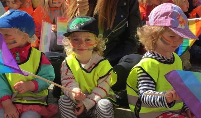 Aceştia au fost filmaţi şi fotografiaţi ţinând în mână simboluri cunoscute ca fiind ale mişcării LGTB și steaguri în culorile curcubeului. Copii de doar 3-5 ani s-au plimbat pe străzile frumosului oraş nordic cântând „Pe cine avem voie să iubim? Pe oricine vrem!”