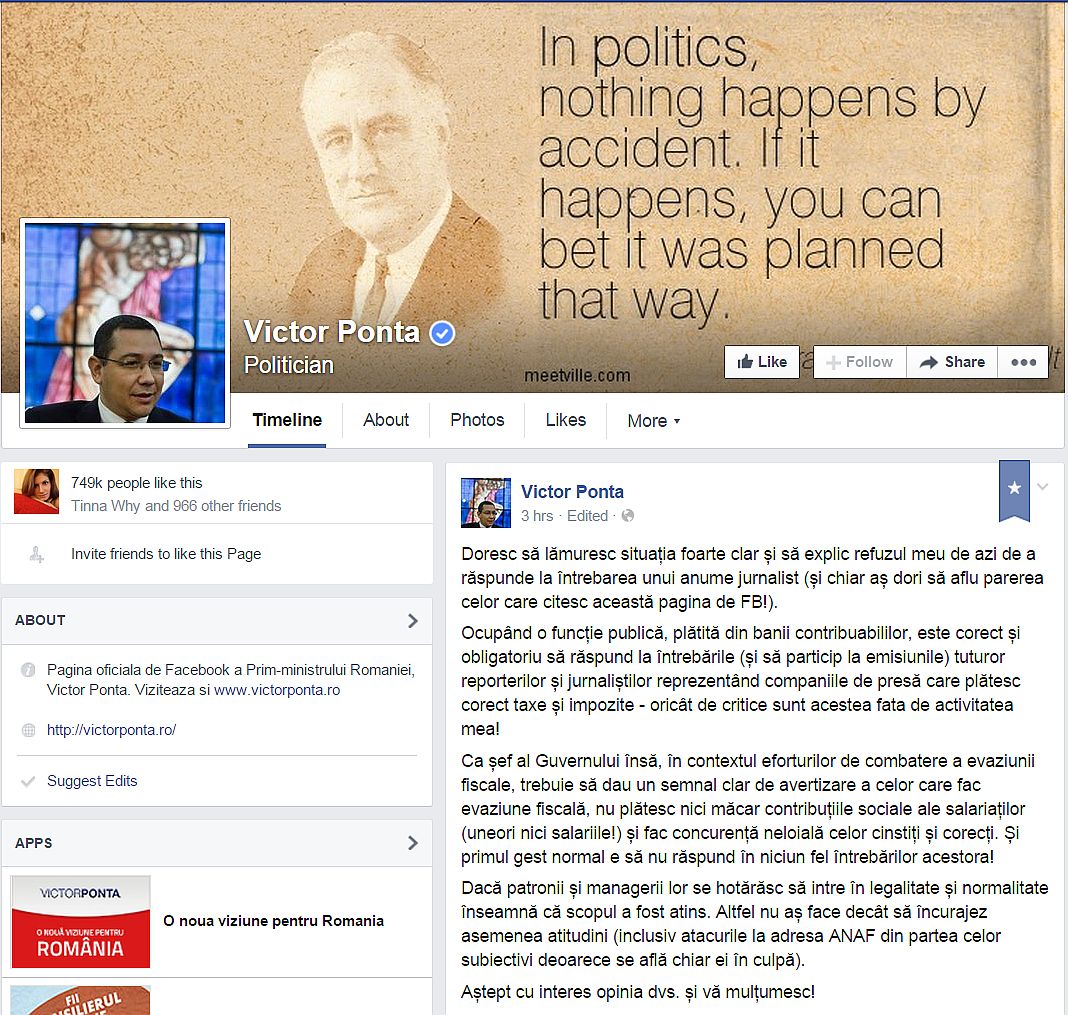 „Dacă ați intrat azi pe Facebook și v-a căzut sub nas o postare a premierului Victor ponta în care explică de ce n-a răspuns azi întrebărilor jurnaliștilor, ei bine, să știți că povestea e un pic mai complicată. Dar am să încerc să v-o fac mai simplă. Un pic de atenție, vă rog! Așa.