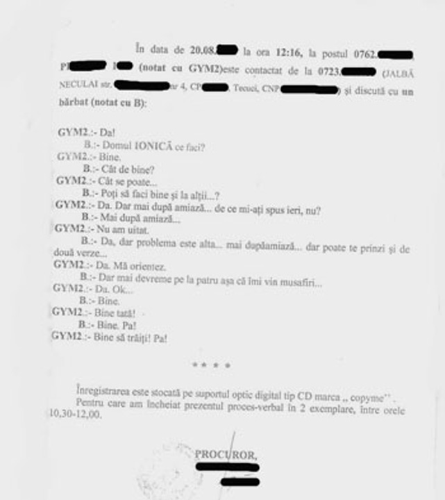 Surpriza indreptarii anchetei catre o „cadere la pace” nu mai este insa chiar atat de mare, daca specificam ca unii dintre cei care o coordoneaza au picat pe tehnica in dosarul declansat in urma cu ceva vreme de denunturile lui Ionel Roset! Iar in dosarul penal nr. 57/P/2013, procurorul Stegarescu Nicu si fostul prim procuror Jalba Neculai, ambii din cadrul Parchetului de pe langa Judecatoria Tecuci, au fost cercetati de catre procurorii anticoruptie de la DNA, Serviciul Teritorial Galati, pentru luare de mita, primire de foloase necuvenite si abuz in serviciu contra intereselor persoanelor. Acum, nemultumit ca procurorii Paulet Dan si Oancea Florin nu au avut ochi pentru imaginile in care se vede cum familia denuntatorului este batuta, Ionel Roset a facut o alta plangere impotriva deciziei partiale de clasare a cauzei. Insa dosarul a fost disjuns la Parchetul Judecatoriei Tecuci, pentru cercetarea infractiunilor de distrugere, talharie, lovire si alte violente. Unde dosarul a ajuns, bineinteles, pe masa procurorului Stegarescu Nicu. Adica tocmai cel care pica pe tehnica, alaturi de Jalba Neculai, la acea data prim procuror al Parchetului de pe langa Judecatoria Tecuci, in inteceptarile telefonice efectuate in cadrul dosarului nr. 886/P/ 2011, instrumentat de catre Parchetul de pe langa Tribunalul Galati. Dosar pornit in urma denuntului efectuat de catre sotii Ionel si Maria Cristina Roset! Iar din stenogramele interceptarilor reiese cum cei doi procurori apelau adesea la serviciile unui anume Pintilie Ion, zis „Gym Taranu”, care a si fost de altfel condamnat la un an si patru luni de inchisoare pentru trafic de influenta prin sentinta penala nr. 180/22.03.2012 a Tribunalului Galati.