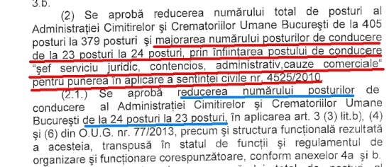 Reangajarea fostului șef al serviciului Contencios, pe 22 ianuarie 2014, a fost făcută tot cu rea credință. O dată cu reangajarea, lui Coruț i s-a înmânat și preavizul de desfacere a contractului de muncă! Momentul a fost pregătit „șmecherește”, dar pe banii noștri, de același Sorin Oprescu! Cu doar o lună înainte, pe 18 decembrie 2013, Oprescu a promovat o hotărâre de consiliu general în bătaie de joc. Astfel, conform articolului 2 alin. 2, s-a majorat numărul de funcții de conducere, prin reînființarea funcției de șef serviciu juridic apoi, două rânduri mai jos, funcția a fost desființată!