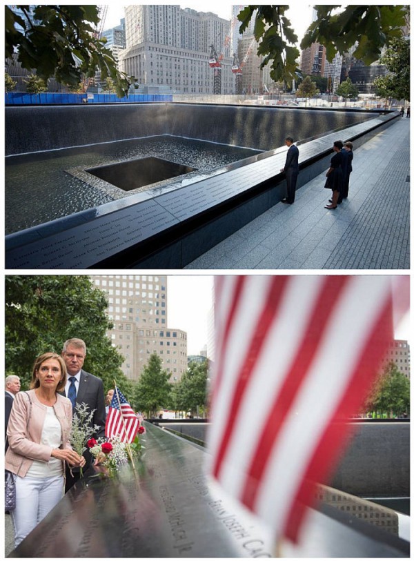 Jurnalistul Bogdan Stoica a observat foarte bine diferența dintre o fotografie făcută de Obama la memorialul 9/11 și una în care apare Klaus Iohannis, realizată în același loc.