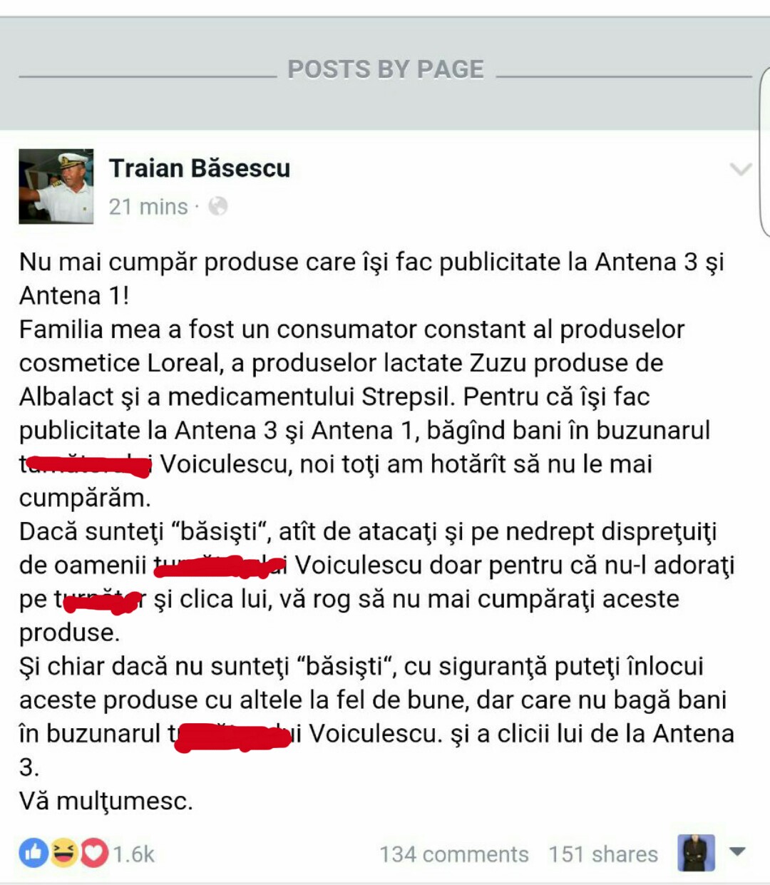 Mircea Badea a postat ironic pe blogul pesonal câteva fotografii în care consumă produsele enumerate de fostul şef al statului în mesajul de boicot adresat basiştilor şi non basiştilor împotriva companiilor care îşi fac reclamă la produse pe Antene.