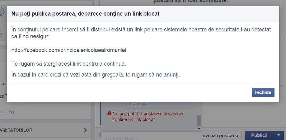 Contul lui Nicolae Mihai putea fi găsit cu uşurinţă pe Facebook, dând căutare „Nicolae de Roumanie de Medforth Mills„, fiind o pagină de persoană publică, pe care urmaşul Regelui era foarte activ şi posta în permanenţă, demonstrându-se extrem de bine racordat la realităţile româneşti şi doritor să comunice cu românii, de care spunea că se simte extrem de apropiat şi ataşat. Acum, contul lui Nicolae este de negăsit. Când dai căutare pe Facebook ce am citat anterior, Facebook dă un preview al acelei pagini de persoană publică, iar când vrei să o deschizi, te redirectează către o pagină generată automat de Facebook, pe baza intereselor şi căutărilor utilizatorilor de Facebook. Aşadar, linkul la pagina de Facebook a lui Nicolae Mihai a fost raportat ca nesigur, iar Facebook l-a blocat. Noi credem că aceia care l-au raportat sunt „dudiştii” din Casa Regală şi că şi noi am fost raportaţi în mod repetat în aceeaşi manieră, pentru a se încerca blocarea activităţii noastre de pe Facebook, foarte deranjantă pentru unii. De precizat ca in data se 12 iunie 2015, nepotul Regelui Mihai a schimbat denumirea paginii sale oficiale din “Principele Nicolae al României” în “Nicolae de Roumanie Medforth Mills”. Pagina cu pricina avea puțin peste 2500 de like-uri, spun cei de la stareapresei.