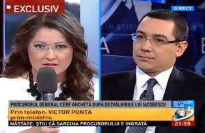 Victor Ponta a fost luat la întrebări, în emisiunea Oanei Stancu, de ce nu-i cere socoteală ministrului Justiţiei – „o moluscă” în opinia ei -, despre ce fac procurorii în cazul Mircea Băsescu – Bercea Mondial. Dialogul a degenerat în momentul în care Ponta a spus că este mulţumit de rezultatele procurorilor anticorupţie şi că nu pot fi chemaţi la ordin pentru că sunt independenţi. Vedeţi mai jos cum a decurs discuţia.