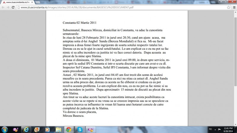 În document, Băsescu se plânge că familia lui Bercea îi făcea vizite nocturne și îi cerea să încerce să-l elibereze pe interlop.