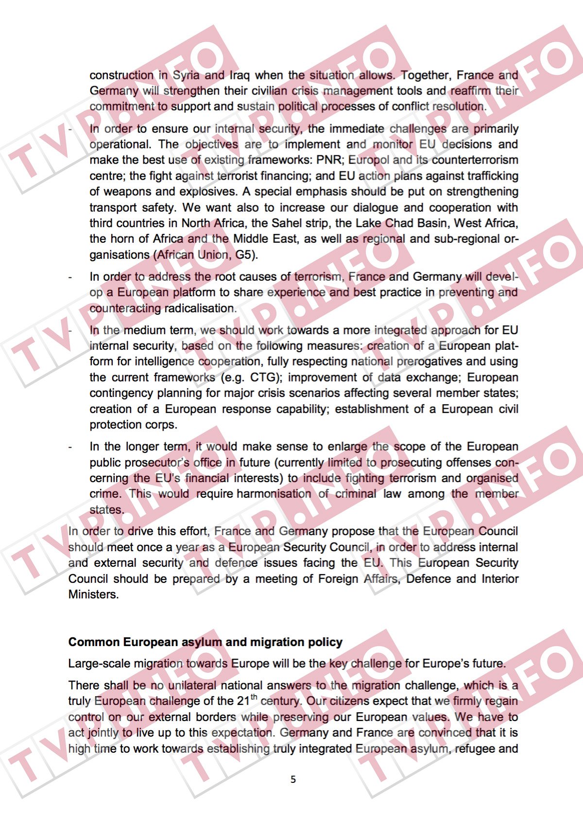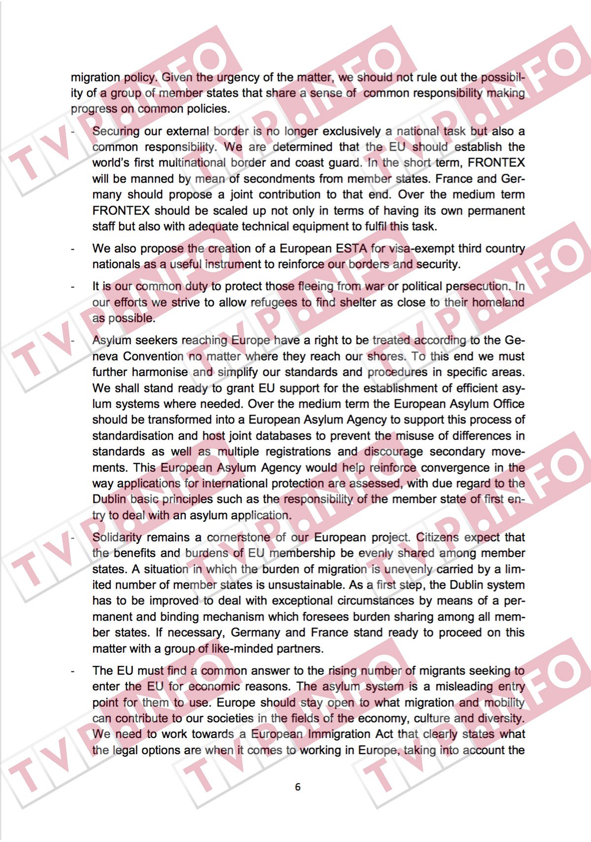 – Politica în privința imigrației și granițelor va fi comună, „refugiații” vor fi distribuiți țărilor membre.