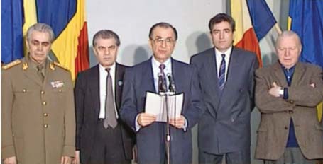 Caracteristic: atac numai la “clica Nicolae Ceauşescu”. FSN chemă la sprijinirea armatei şi a Ministerului Afacerilor Interne şi a serviciului de securitate, care s-au declarat de partea poporului. In declaraţia FSN despre preluarea puterii se solicită ministerului să funcţioneze în mod normal. Asta înseamnă că miezul vechii structuri, deşi fără Nicolae Ceauşescu, a rămas neschimbat.