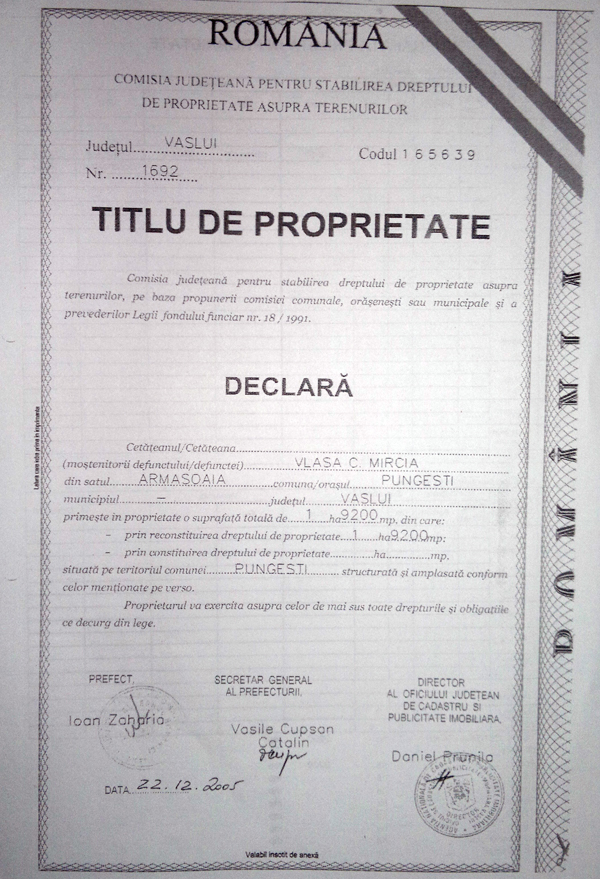 Cotidianul nostru a solicitat Primãriei Pungesti actele care stau la baza emiterii titlului de proprietate prin care primarul Pungestiului a intrat în posesia terenului de 1,92 ha din satul Silistea, teren pe care acesta l-a închiriat în vara anului 2013, Chevron-ului. Secretarul comunei, Constantin Chiriac ne-a pus la dispozitie protocolul între comunele Ivãnesti si Pungesti, spunând cã acestea sunt toate documentele care stau în spatele titlului: “Probabil mai multe documente despre acest schimb de teren îl au cei de la comuna Ivãnesti. Ei sunt cei care au initiat protocolul. La noi nu avem decât aceastã hârtie. Cererile de recunoastere a dreptului de proprietate a mostenitorilor poate cã sunt acolo. Noi aici, nu avem de ce sã le avem, fiindcã socrii primarului aveau teren la Ivãnesti”. Iatã continutul acestui protocol, întocmit pe “genunchi”, fãrã sã continã toate datele ci doar sã serveascã interesul personal al lui Mircia Vlasã, care astfel înstrãineazã din propietatea privatã a comunei o supafatã de aproape 4 ha si o dã comunei vecine: “Comisia localã de fond funciar Ivãnesti, reprezentatã prin d-l Lazãr Petricã (n.r. decedat între timp) si Comisia de fond funciar Pungesti s-a procedat la încheierea prezentului protocol: suprafata de teren de 3,82 ha, situatã în punctul Ezer -Buscata, proprietatea autorilor, Lazãr Constantin -2,32 ha si Lazanu Gheorghe-12,5 ha (n.r. una dintre aceste doua persoane fiind socru lui Vlasã), sunt înscrisi în Registrele Agricole1956-1958, pozitia192 si 193 sat Buscata. Pentru aceasta suprafatã, Comisia localã de fond funciar Ivãnesti nu emite pretentii si transferã aceastã suprafatã Comisii locale de fond funciar Pungesti ce urmeazã sa efectueze punerea în posesie si sã elibereze titluri de proprietate mostenitorilor a susnumitilor autori din rezerva proprie.” Conform legii, acest protocol ar fi trebuit sã continã date certe despre constituirea dreptului de proprietate a celor douã persoane mentionate si apoi trebuia vizat de comisia judeteanã de fond funciar. Pânã acum Prefectura Vaslui nu a confirmat si nici infirmat dacã prin comisia sa a trecut acest protocol, mai mult specialistii în fond funciar spun cã acest protocol este ilegal si aberant: “Nu se poate face un asemena protocol decât dacã e vorba de terenul ADS, adicã al statului. Mai mult, dacã vorbim de persoone fizice, trebuia ca cei din comuna Ivãnesti sã nu fi avut la acel moment (anul 2004) teren disponibil si numai asa se putea împroprietãri mostenitorii cu teren dintr-o altã comunã. Faptul cã acel teren a ajuns chiar la primar, care si semneazã protocolul e clar un conflict de interes pe care probabil ANI îl va investiga” .
