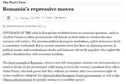 Pentru cei care nu realizează cât de gravă este situația, recomand editorialul din The Washington Post. Este o poziție semnată de boardul editorial al publicației, o astfel de apariție fiind extrem de rară. Despre România, așa ceva nu a mai apărut de foarte, foarte mulți ani.