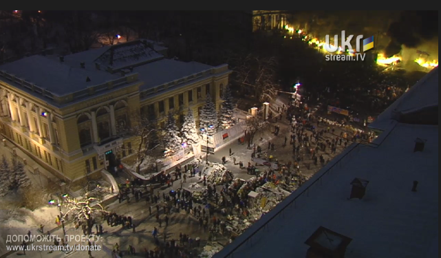 Interventia in forta a fortelor militare a rezultat daramarea baricadelor ridicate de protestatari  pe strada Hrushchevskoho, din apropierea stadionului echipei Dinamo Kiev.