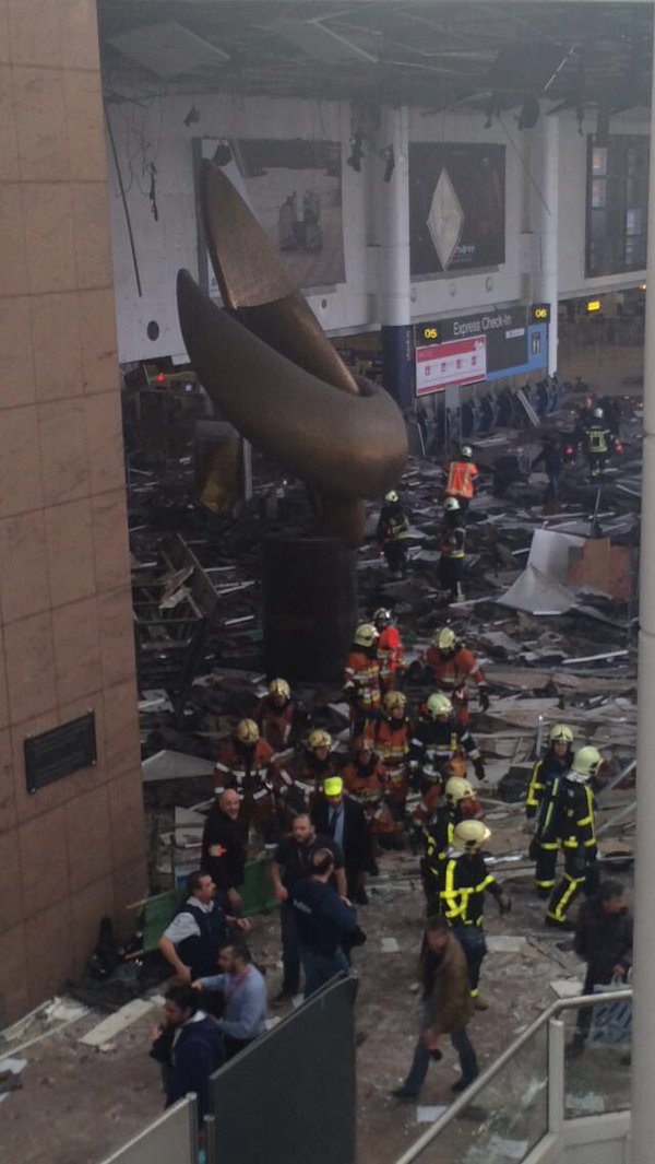 Aeroportul Zaventem din Bruxelles a fost evacuat marti dimineata dupa doua explozii puternice ce au zguduit terminalul de plecari si au dus la cel putin un mort si la zeci de raniti. Mai multe publicatii spun ca bilantul este de cel putin 11 persoane ucise, informeaza hotnews.ro Deflagratiile au avut loc inainte de controlul de securitate langa ghiseul companiei American Airlines. Agentia Belga a transmis ca s-au auzit strigate in araba si focuri de arma inaintea exploziilor.