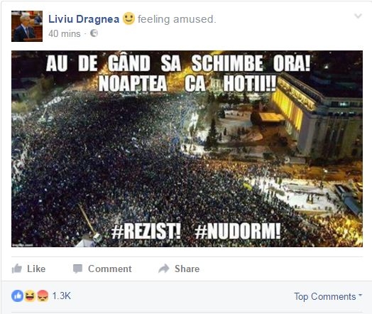 Președintele PSD Liviu Dragnea a fost ținta criticilor a numeroase persoane după ce sâmbătă seară a postat o fotografie pe Facebook care ironiza protestele din Piața Victoriei, scrie b1.ro