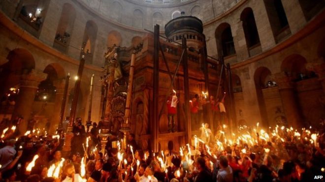 Înăuntrul acestui mormânt, lumina emanată de lumânări şi candele face posibilă observarea unor detalii care, de obicei, sunt trecute cu vederea. Biserica Mormântului Sfânt se află, în acest moment, în custodia a şase religii creştine. Biserica Ortodoxă Greacă, Biserica Romano-Catolică şi Biserica Ortodoxă Armeană deţin cel mai mult controlul asupra acestei zone, iar statutul unor părţi ale acestei biserici care sunt considerate locuri comune de veneraţie pentru toate religiile, inclusiv mormântul, a fost reglementat printr-un acord care consemna dreptul de custodie al tuturor religiilor.