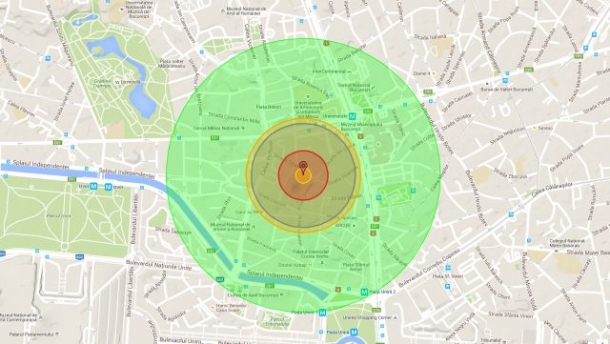 Un site numit nuclearsecrecy.com folosește hărțile Google pentru a arăta cât de mari ar fi distrugerile în cazul în care mai multe tipuri de bombe ar cădea peste diverse orașe ale lumii, scrie b1.ro.