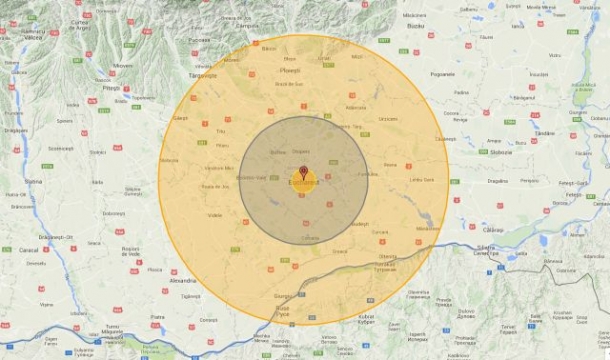 Astfel, conform nuclearsecrecy.com o bombă teroristă (100 t) ar distruge doar centrul Capitalei României, pe o rază de 30 de metri, în timp ce Tsar Bomba (100 Mt), cea mai mare bombă creată vreodată, ar rade de pe suprafața pământului Bucureștiul, dar și mai multe orașe, printre care Târgoviște, Ploiești, Giurgiu și chiar Ruse (Bulgaria).