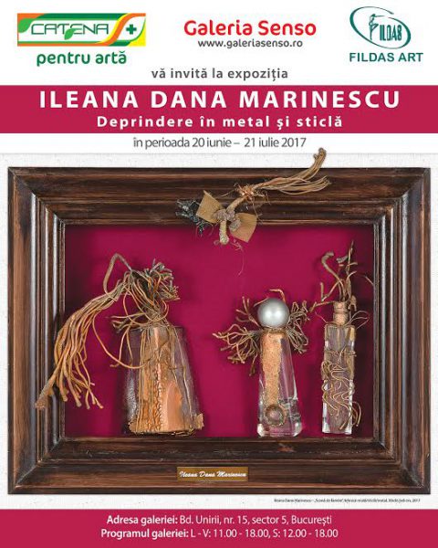 Marţi, 20 iunie 2017, ora 18:00, vă invităm la Galeria de Artă SENSO (Bd. Unirii nr. 15, București) unde va avea loc vernisajul expoziţiei „Deprindere în metal şi sticlă” a artistei Ileana Dana Marinescu.