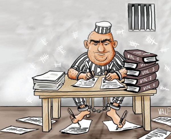 În timp ce în România se vorbeşte despre apusul marilor corupţi, în penitenciare aceştia continuă să profite de nişte legi incomplete şi să-şi cumpere zile de libertate. Copiază cuvânt cu cuvânt pagini întregi, cumpără lucrări gata făcute, înşiră tot felul de consideraţii personale fără nicio valoare ştiinţifică, scriu chiar rânduri în care înfierează justiţia. În schimbul acestei maculaturi primesc, conform Legii 254/2013, o scutire de pedeapsă de 30 de zile pentru fiecare carte scoasă. Cartea poate conţine orice, pentru că legea nu stabileşte cine ar trebui să decidă dacă este sau nu lucrare ştiinţifică. Comisiile de eliberare condiţionată din penitenciare avizează orice carte care vine cu recomandarea unui profesor universitar. Legea nu obligă profesorul şi pe nimeni altcineva să citească şi să evalueze lucrarea deţinutului.