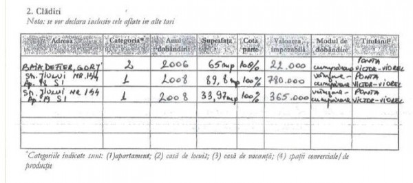 Cele doua apartamente se regasesc insa in declaratiile de avere din 2008, unde a a scris cu mana lui ca le-a achizitionat in anul 2008.
