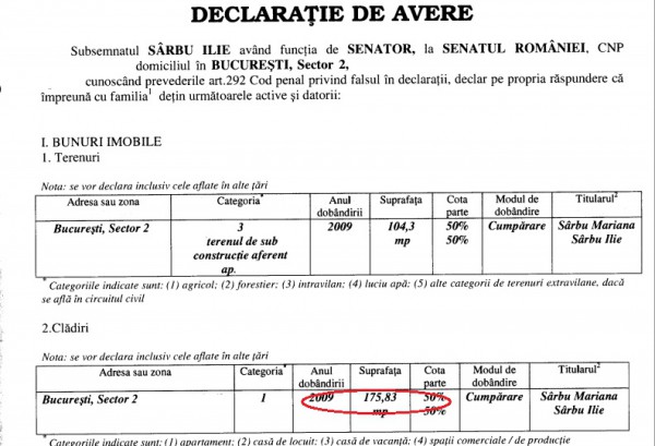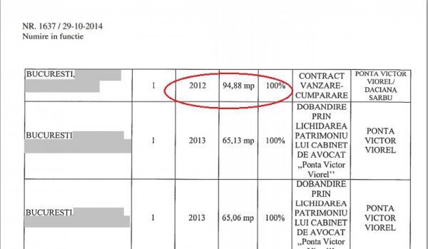 Toate bune și bănoase, numai că nici în declarațiile de avere ale lui Victor Ponta și nici în cele ale Dacianei Sârbu nu apare vreun apartament de 119 metri pătrați (vezi documente atasate) Ponta are un apartament de 94 de metri pătrați cumpărat în 2012 împreună cu soția, iar Daciana Sârbu are un apartament de 167 de metri pătrați cumpărat în 2007. Ambele în același complex rezidențial construit de Nicu Niro.