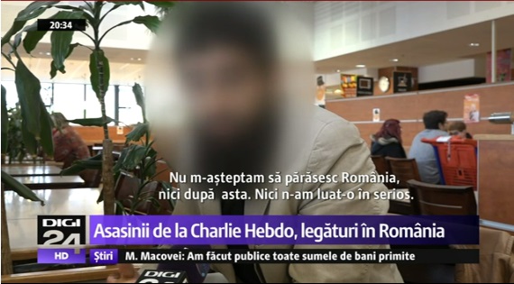 Asasinii de la Charile Hebdo ar fi avut legături directe cu România. Şase dintre cei şapte străini expulzați din ţara noastră din cauza legăturilor cu grupări teroriste, despre care SRI a vorbit la sfârşitul săptămânii trecute, sunt cetăteni francezi. Ei au afaceri cu carne la Satu Mare şi o activitate religioasă radicalizată, potrivit agenţilor secreţi. Digi24 a vorbit în exclusivitate cu unul dintre indezirabili. Bărbatul locuieşte lângă Paris, la Soissons, oraş cu o comunitate de peste 3.000 de musulmani. Digi24 a decis să protejeze imaginea acestui cetăţean, care beneficiază de prezumţia de nevinovăţie.