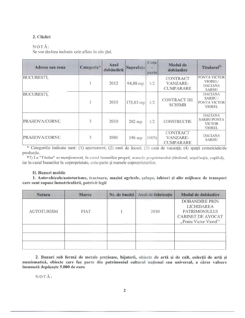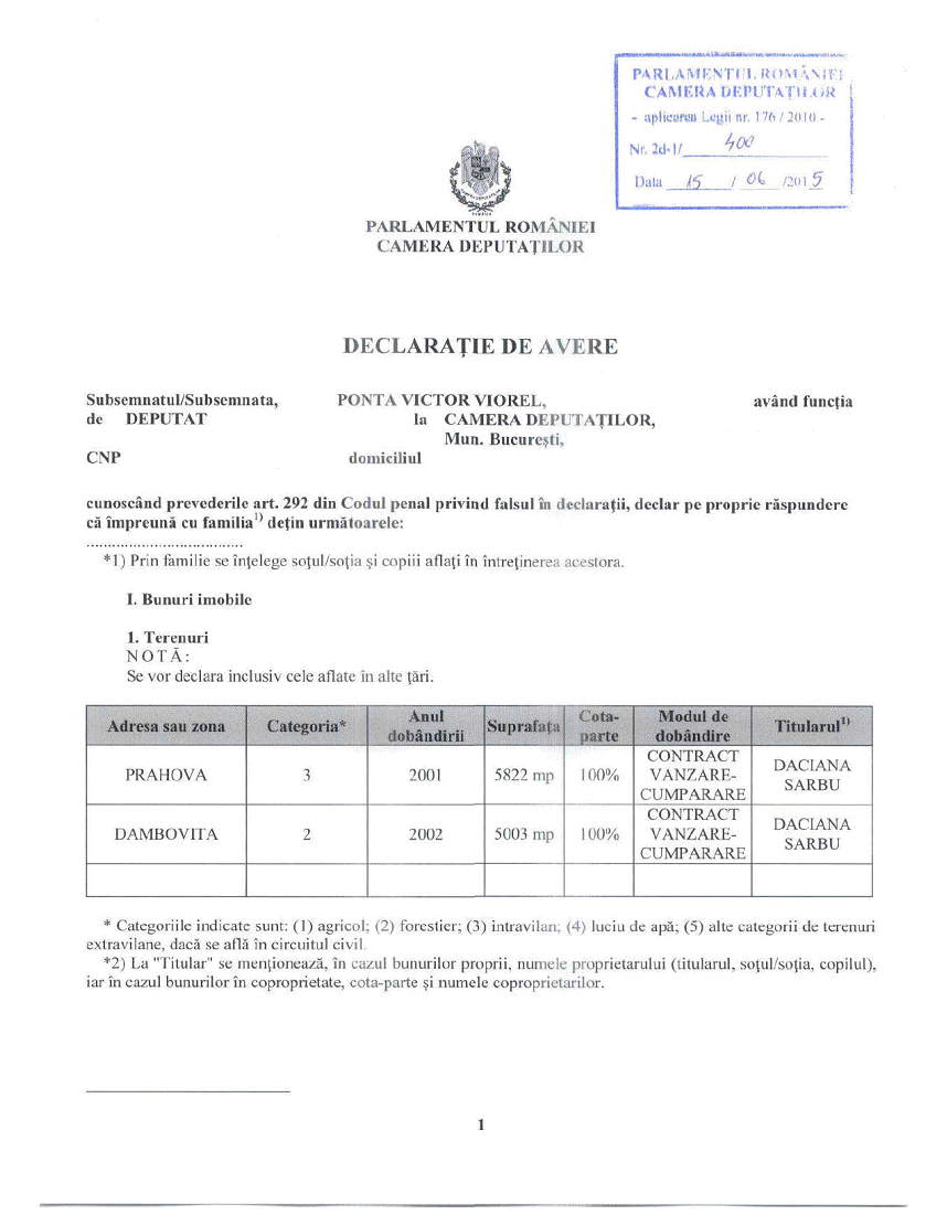 Iată declaraţia de avere a lui Victor Ponta din 2015: