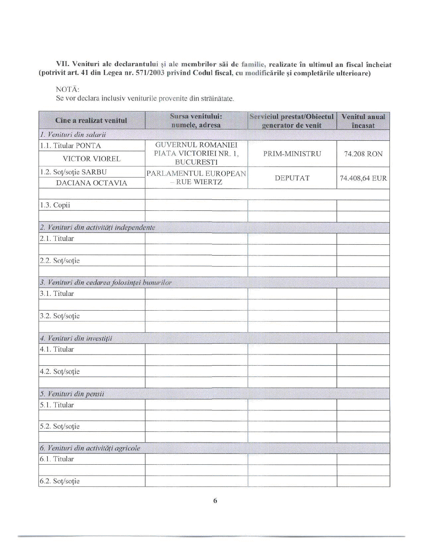 Iată declaraţia de avere a lui Victor Ponta din 2014: