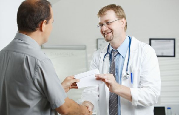 Ziua continuă în acelaşi fel, zeci de pacienţii care se perindă prin cabinet primesc actele medicale şi lasă câte un plic pe masă. Ora