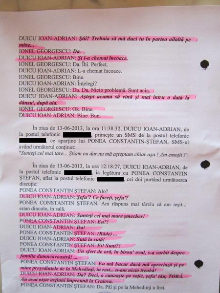In data de 13.06.2013, la ora 11:38, Duicu primeste un SMS de la Ponea, cu urmatorul continut: „Sunteti cel mai tare…Stiam eu dar nu ma asteptam chiar asa! Am emotii!”. O ora mai tarziu, la Duicu il suna pe Ponea.