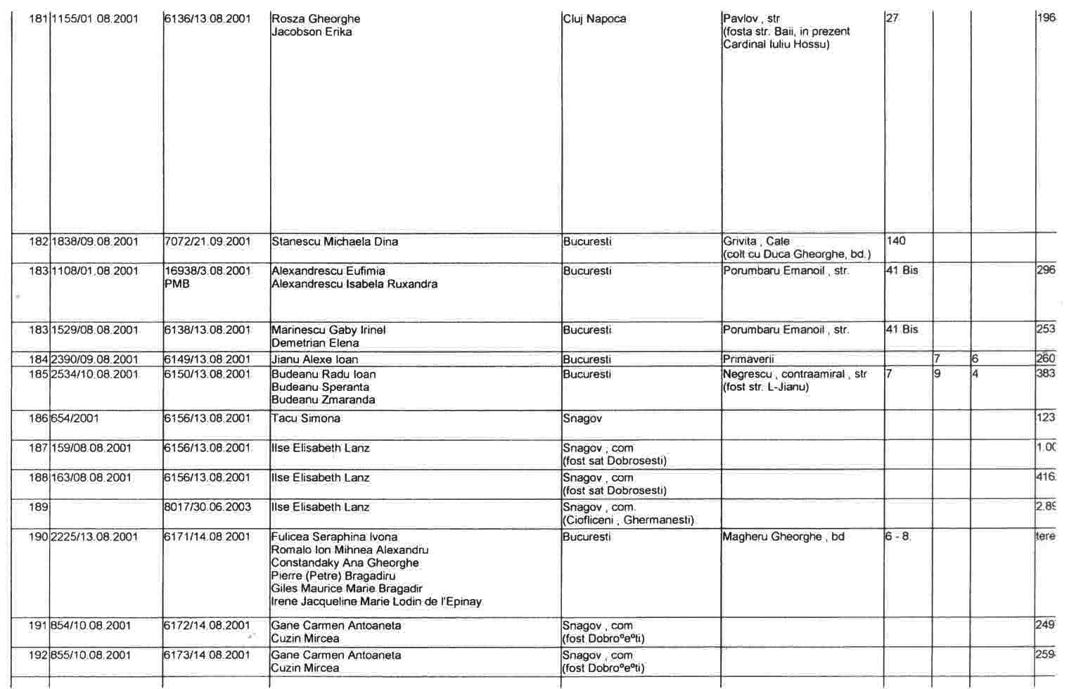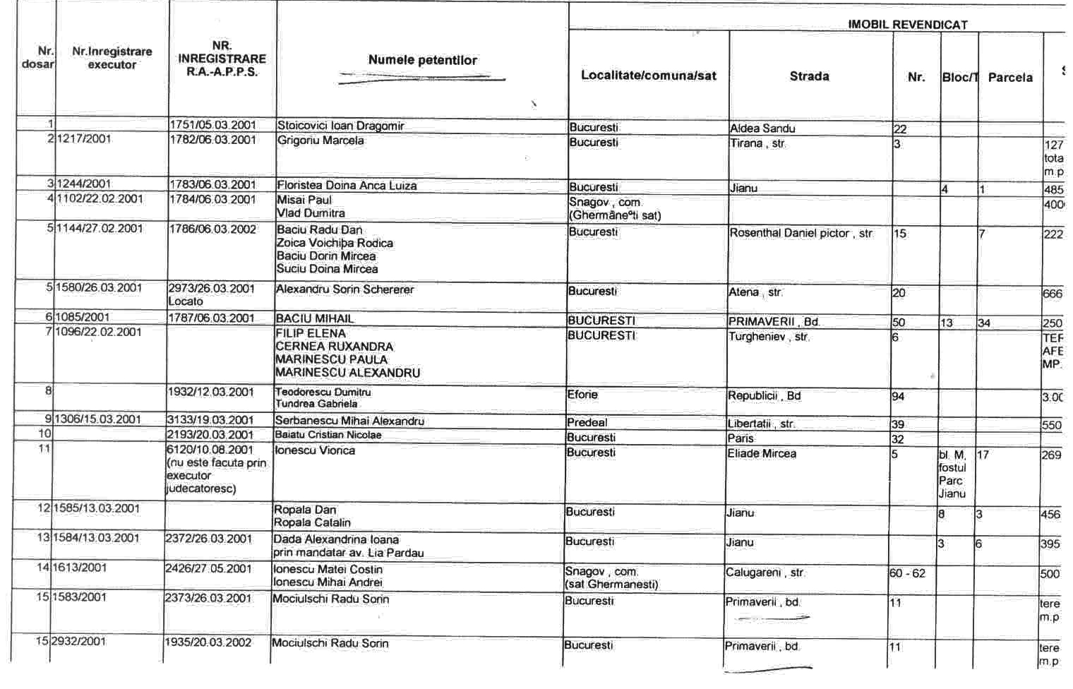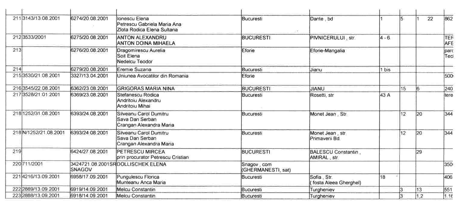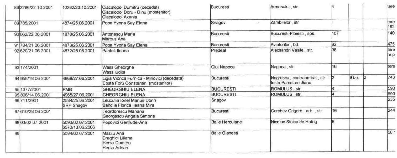 ASTEA SUNT LISTELE CARE CUPRIND NOTIFICARILE in baza LEGII 10/2001 a FOSTILOR PROPRIETARI .