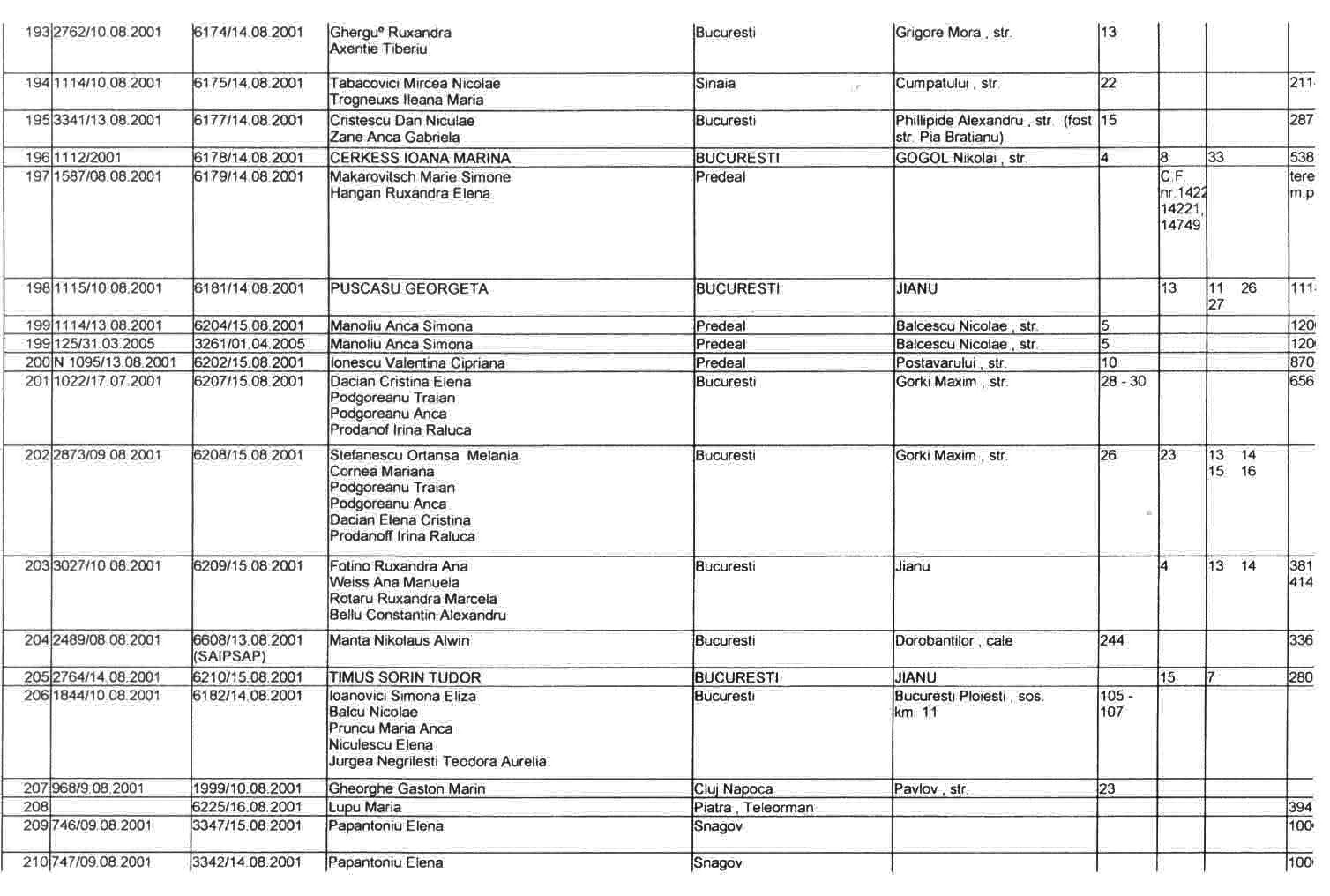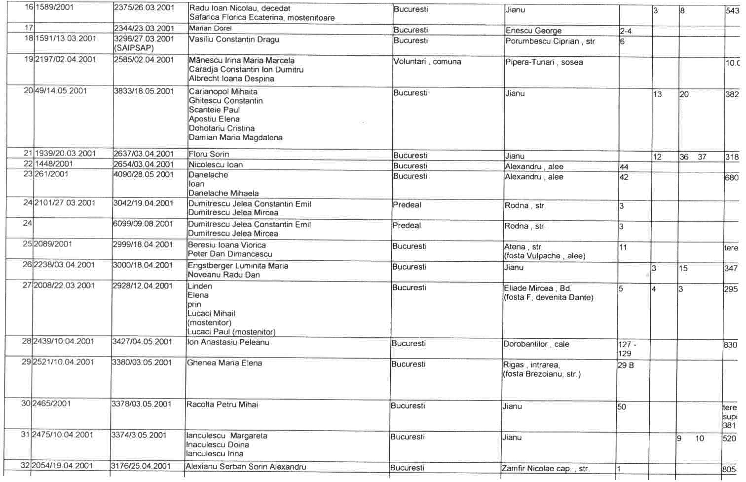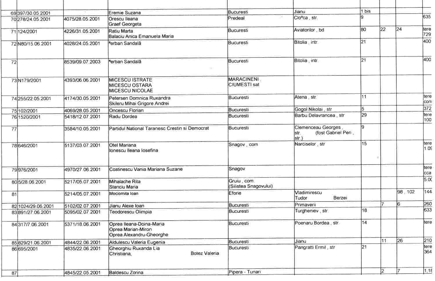 ASTEA SUNT LISTELE CARE CUPRIND NOTIFICARILE in baza LEGII 10/2001 a FOSTILOR PROPRIETARI .