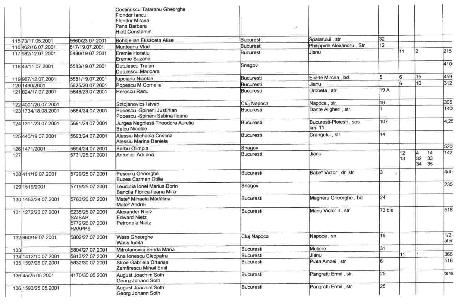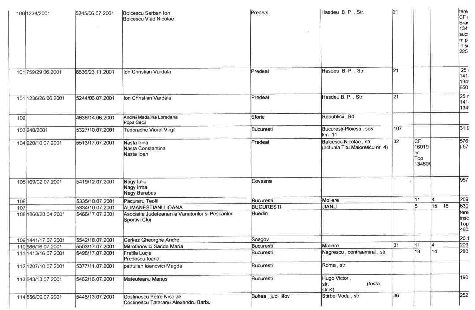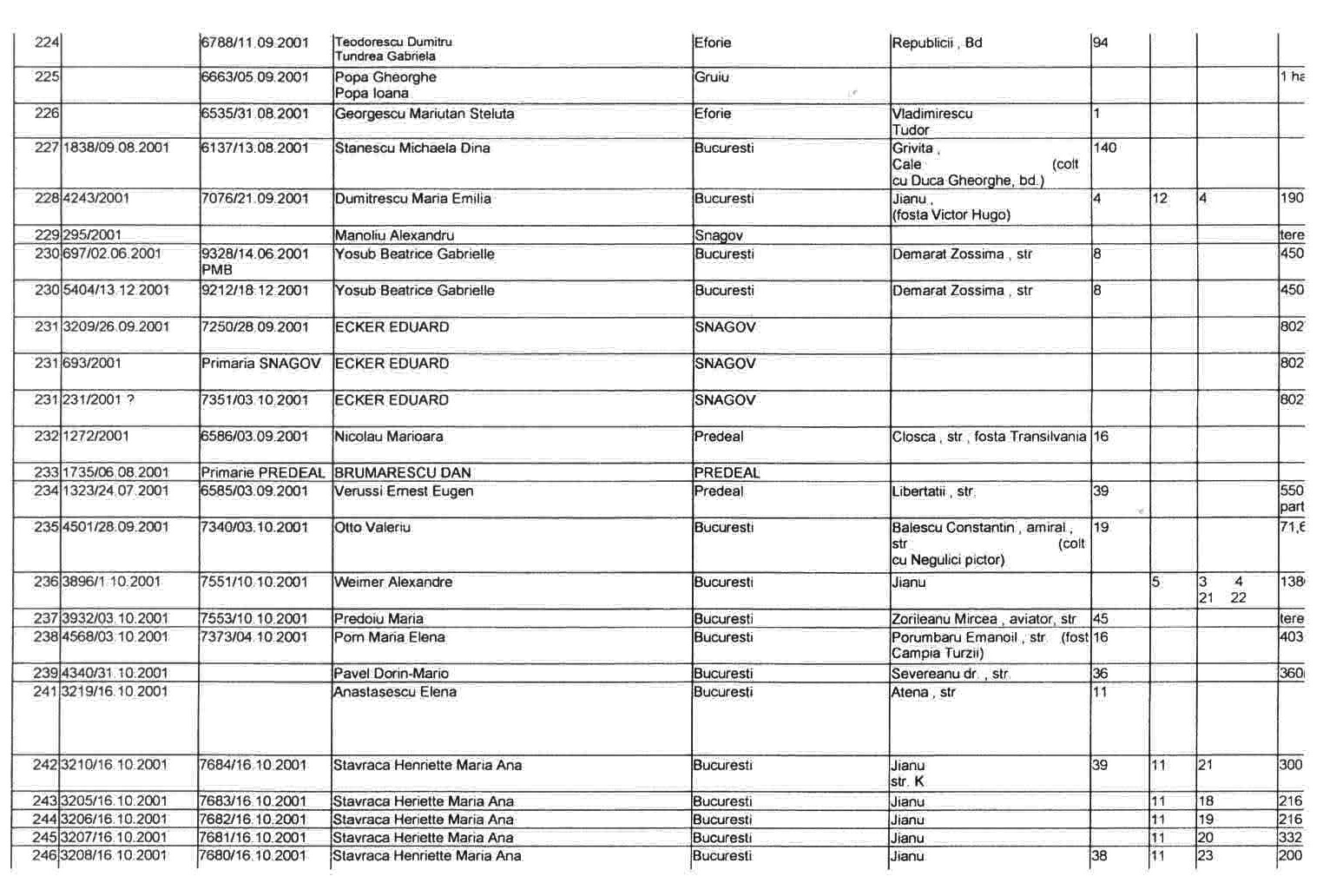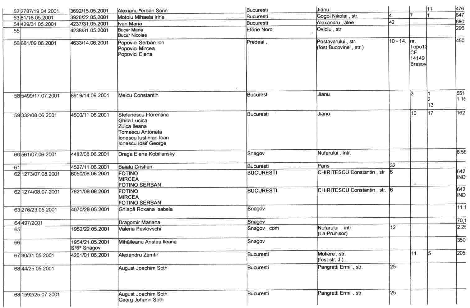 ASTEA SUNT LISTELE CARE CUPRIND NOTIFICARILE in baza LEGII 10/2001 a FOSTILOR PROPRIETARI .