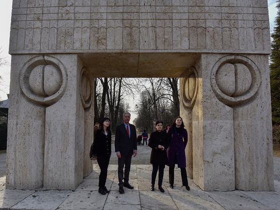 Ambasadorul SUA în România, Hans Klemm, i-a trimis o scrisoare oficială de mulțumire persoanei care a coordonat, în 2013, spălarea distructivă cu jet de apă sub presiune a Porții Sărutului. Klemm o cunoscuse cu puțin timp înainte, la Târgu Jiu, pe Adina Andrițoiu, angajată a Centrului Brâncuși. Aceasta i-a fost ghid, deși era cercetată penal. Imediat după plecarea ambasadorului, dosarul penal a fost clasat, la mai bine de trei ani de la începerea cercetărilor, de o procuroare care fusese, timp de 7 ani, colegă cu Adina Andrițoiu, mai scrie sursa citată.