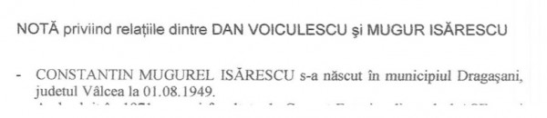 NOTĂ privind relaţille dintre DAN VOICULESCU şi MUGUR ISĂRESCU