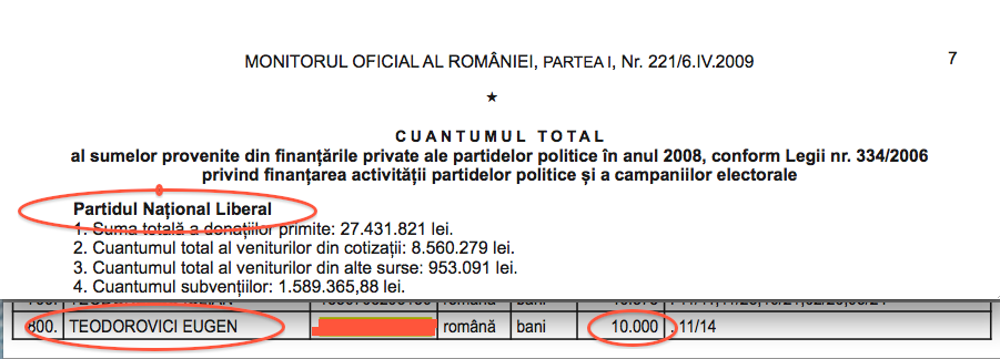Să începem cu PNL. Pentru care, în 2008, Teodorovici a donat 10.000 RON.