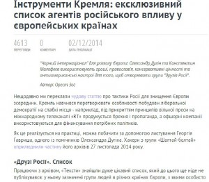 De asemenea, săptămâna trecută, în 27 noiembrie, sub titlul „Internaționala Neagră, Malofeev și Dughin” a publicat o arhivă importantă de email-uri care dezvăluie gândirea și acțiunile lui Konstantin Malofeev, sponsor al teroriștilor in estul Ucrainei și al mișcărilor extremiste din state membre ale Uniunii Europene.