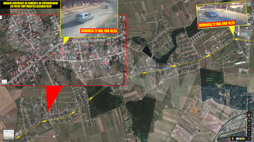 Imaginile au fost surprinse de camerele de supraveghere ale Primăriei Corbeanca cu puţin timp înainte să aibă loc fatalul accident şi arată clar maşina patronului Hexi Pharma se deplasa cu o viteză redusă!