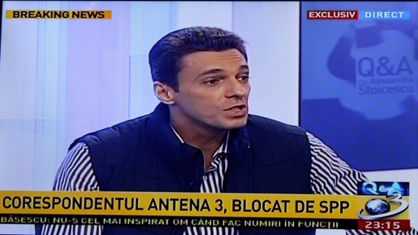 În cele din urmă, reporterul primit la Cotroceni a fost Ionuț Cristache (foto), cel acreditat demult din partea Antenei 3, cunoscut și ca „reporterul-sărmăluță”autorul celebrei gafe despre șeful STS care ar fi fost pe moarte în timp ce el era bine-mersi în Parlamentul României. Alături de el s-a aflat și Sabina Iosub, realizatoarea emisiunii de dimineață „Previziunile zilei”.