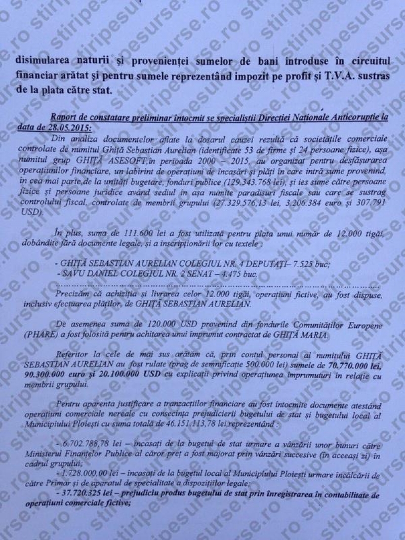 DNA îl acuză de deputatul Sebastian Ghiţă că a controlat o reţea de 54 de firme, unele dintre ele din paradisuri fiscale, şi 24 de persoane fizice. Prin diverse tehnici descrise de procurori, reţeaua, bazată pe rude şi prieteni ale deputatului, a rulat sume de zeci de milioane de euro şi a prejudiciat statul.