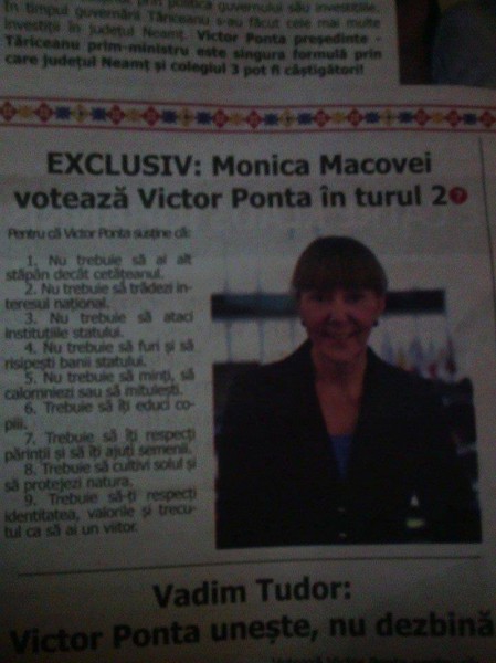 „EXCLUSIV: Monica Macovei voteaza Victor Ponta in turul 2