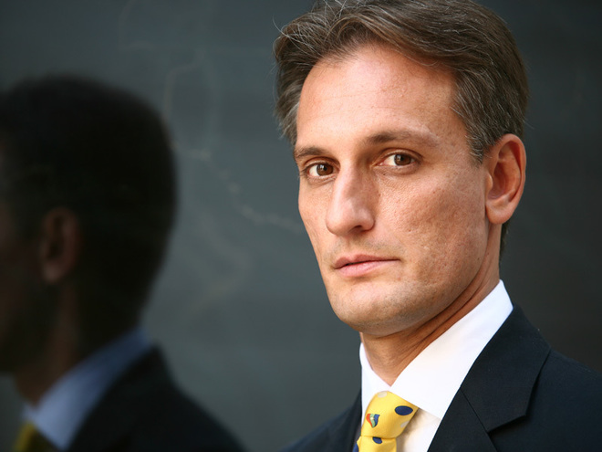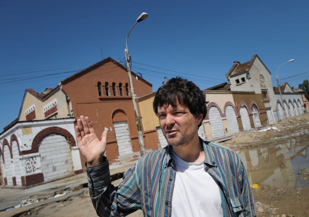 TO GO WITH AFP STORY-Nicusor Dan, a researcher at the Institute of Mathematics of the Romanian Academy and founder of the „Save Bucharest” NGO, poses in the front of „Hala Matache” (The Matache marketplace) a historical building saved from demolition in Bucharest on August 12, 2011. Dan has taken up the challenge to defend Bucharest’s heritage and parks against erratic constructions, large roads crossing historical districts and corruption with some unexpected success. AFP PHOTO / DANIEL MIHAILESCU