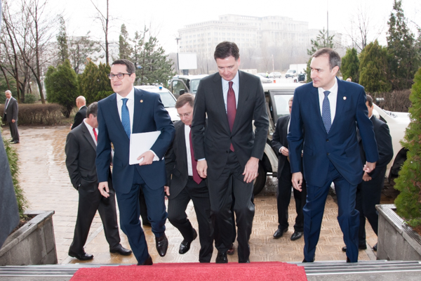 „Criminalitatea cibernetică este una dintre prioritățile FBI și știu că este și una dintre prioritățile dvs. Infractorii care acționează prin intermediul internetului pot crea prejudicii în întreaga lume, pentru că viața noastră este strâns legată de internet. Copiii noștri se joacă pe internet, aici facem tranzacții bancare, aici se află informații personale medicale și aici se află și infrastructuri critice ale țării noastre. Acțiunile infractorilor vizează astfel de informații, pentru că le stă în putere să facă acest lucru. Colaborarea dintre noi este foarte importantă pentru a putea acționa dincolo de frontierele unui stat, așa cum fac și infractorii, astfel încât să îi protejăm pe cetățenii noștri. Împreună cu colegii din România, încercăm să identificăm și să aducem în fața justiției persoanele implicate în infracțiuni cibernetice de proporții, care au înșelat mii de persoane din întreaga lume. Pe lângă colaborarea din domeniul cibernetic, care este esențială din punctul de vedere al FBI, eforturile noastre comune vizează și o serie de investigații de contraspionaj. Facem permanent schimb de informații vizând combaterea terorismului, a corupției și a crimei organizate transfrontaliere”, a spus James Comey.