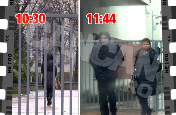 Ora 11.44. Sotia lui Adriean Videanu paraseste Washington Residence insotita de un barbat. Discuta ceva cu acesta, iar respectivul o aproba.