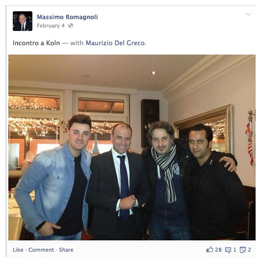 Conform investigației colegilor de la IRPI și Correctiv, un nume important al acestor grupări este Calogero de Caro, 51 de ani, un sicilian care a emigrat în Germania, după ce a fost arestat și întemnițat în anii’80 pentru asasinate în numele mafiei. Când l-au arestat anul trecut într-o amplă operațiune antimafia, polițiștii germani au găsit în agenda lui cartea de vizită a lui Romagnoli. De Caro, care era proprietarul unei firme de curățenie, dar era implicat subteran și în afaceri cu construcții, a declarat atunci că l-a cunoscut pe fostul deputat ca politician, fiind responsabil pentru colectarea de voturi în campania electorală. El a mai susținut că a apelat la Romagnoli să-l ajute pe un contabil al grupării, anchetat de autoritățile germane, să-și reînoiască pașaportul.