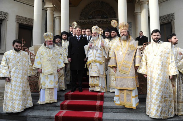 În fotografia de mai sus a fost realizată, vineri, cu ocazia participării preşedintelui Klaus Iohannis la slujba Sfintei Liturghii, oficiată de Preafericitul Părinte Daniel, Patriarhul Bisericii Ortodoxe Române, la Patriarhie. La final, şeful statului a avut o întrevedere privată cu Patriarhul, care a durat aproximativ trei ore.