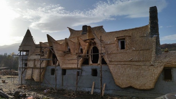 „Am vrut să fie o casă de poveste pentru că avem un băieţel de şapte ani şi am călătorit în ţară la diverse pensiuni. Am vrut să fie altceva”, mai spune Răzvan Vasile. Castelul de lut are zece camere şi o amprentă la sol de 320 mp.