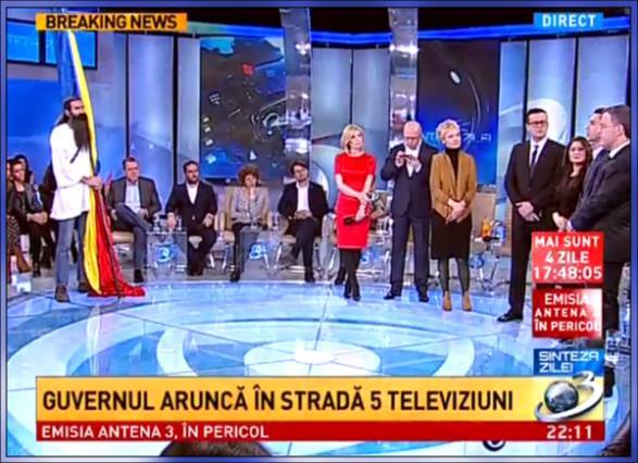 15 februarie 2016: Antena 3 anunţă că Fiscul le-a trimis ordinul de evacuare în 5 zile şi acuză abuzuri, presiuni şi încălcări ale libertăţii de exprimare.