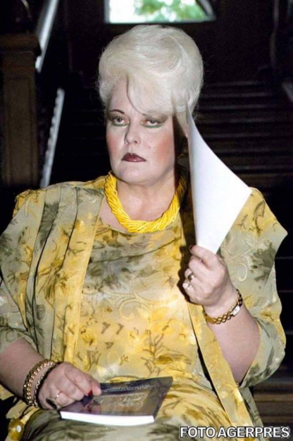 Dupa cum e machiata, zici ca e fantoma de la opera….. Si e asa pe banii romanilor! De ce nu se desfiinteaza postul daca tot nu e folosit ca atare: purtator de cuvant! Ce dreaq poarta asta??? Cuvintele scrise pe hartiute???
