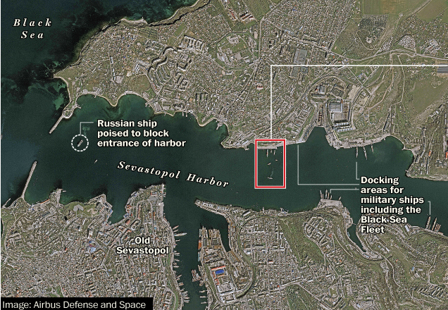 Flota rusa din Crimeea si-a scufundat o nava proprie, scoasa din uz, pentru a bloca accesul fortelor navale ucrainiene la Marea Neagra.
