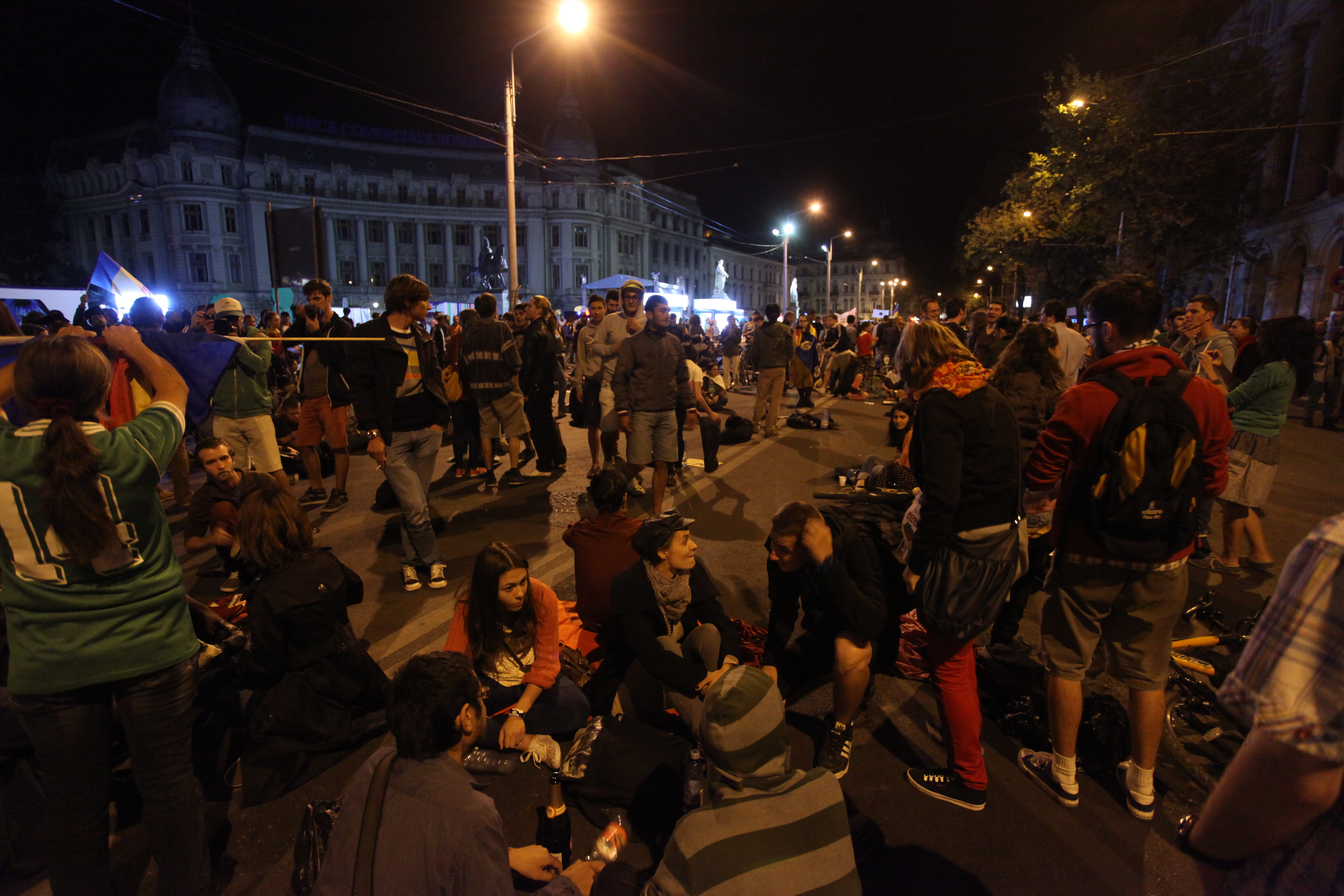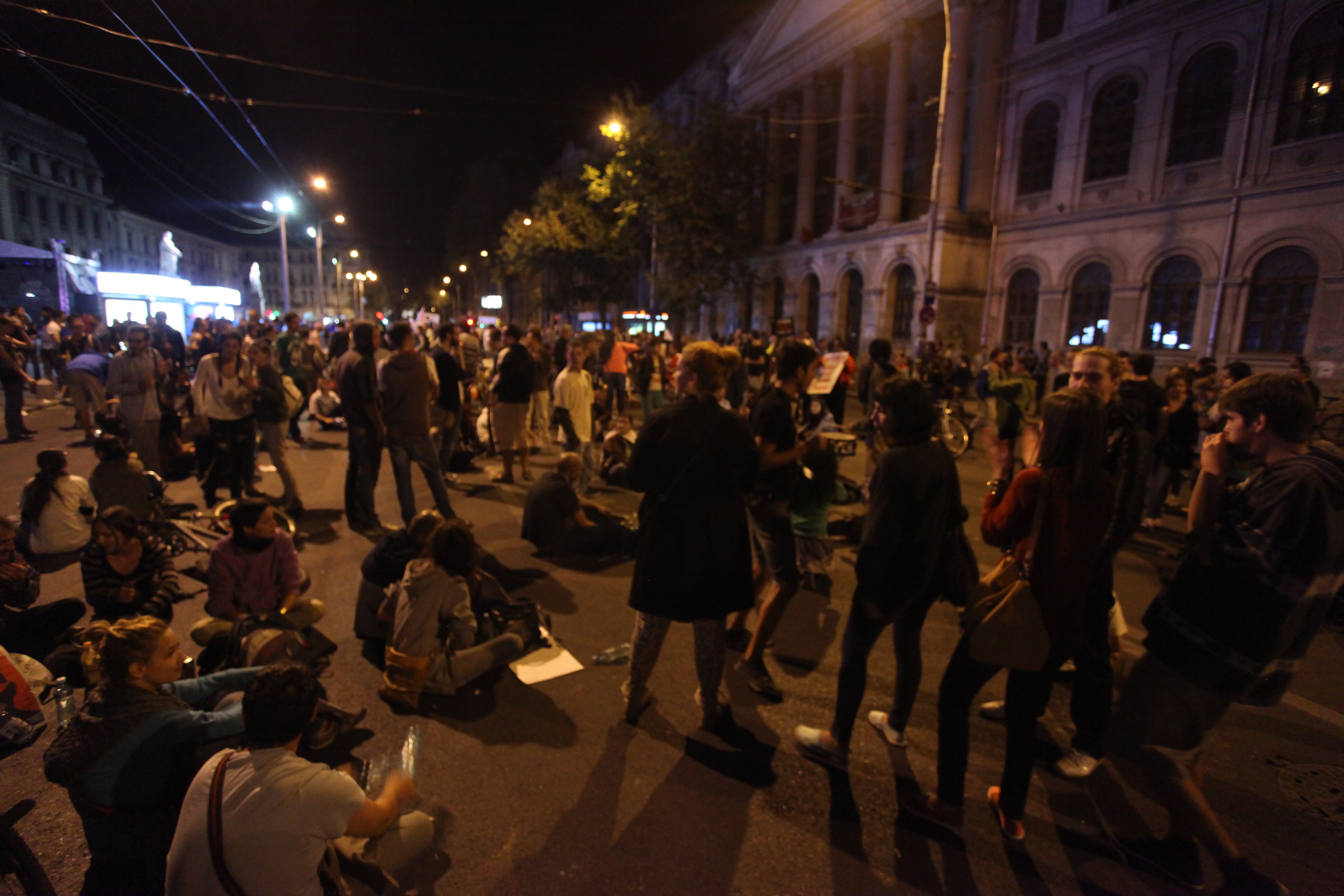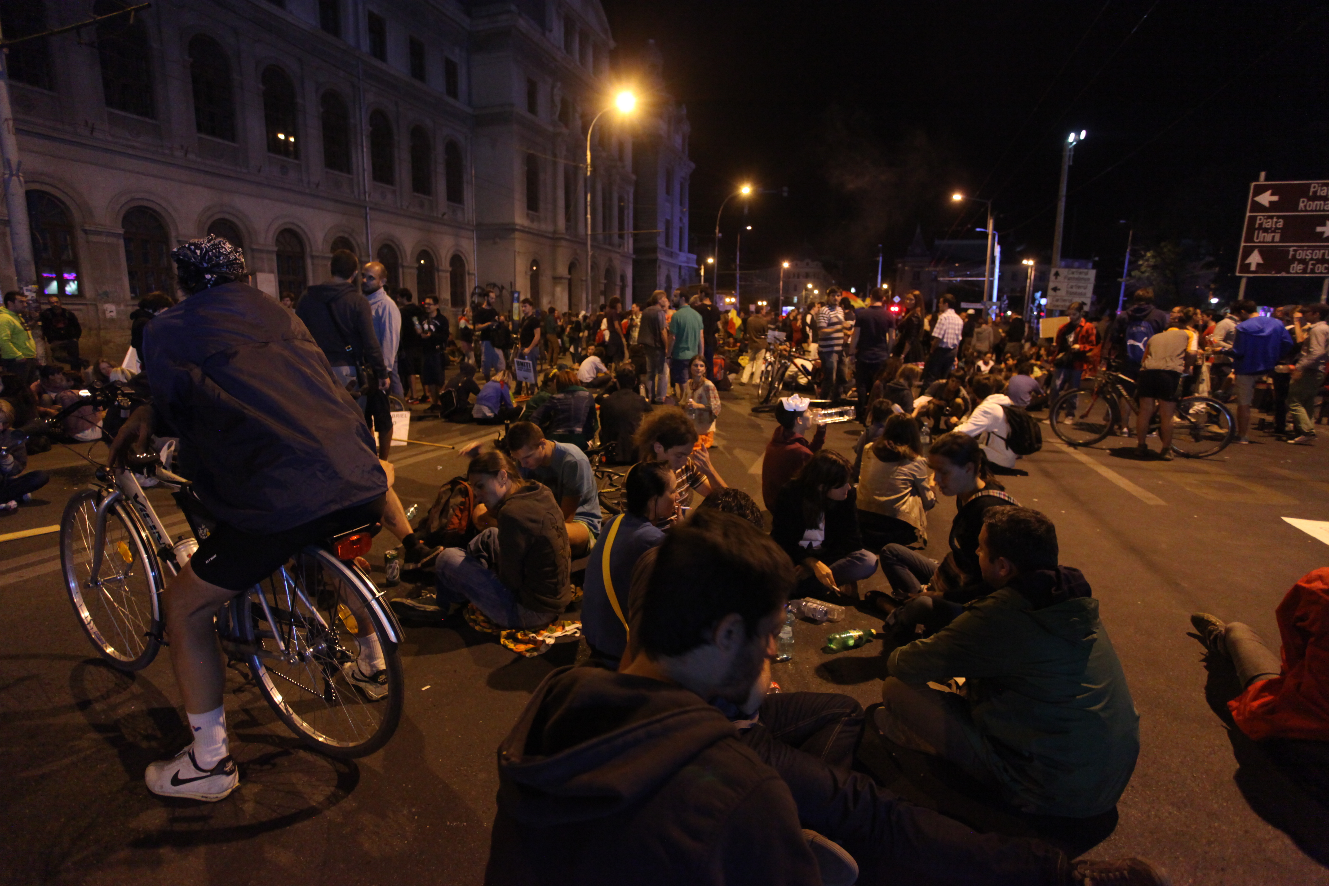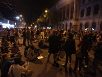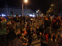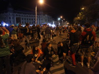 Nasul Tv a transmis imagini din Piata Universitatii, la miezul noptii, cand Bulevardul Regina Elisabeta a fost blocat de cei 2.000 de manifestanti.